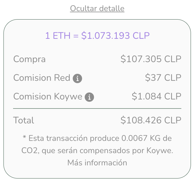 If you choose a local currency, for example 100,000 CLP, our API will calculate how many tokens you’ll get, minus commission.