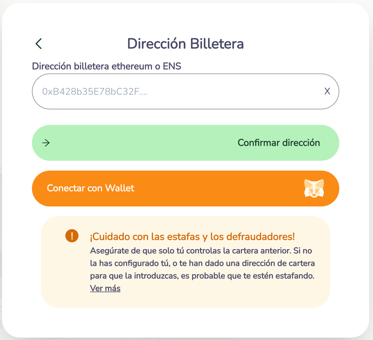 You can enter an ENS domain name, in Ethereum compatible networks, or connect your browser wallet, so you don’t have to write the address by hand.