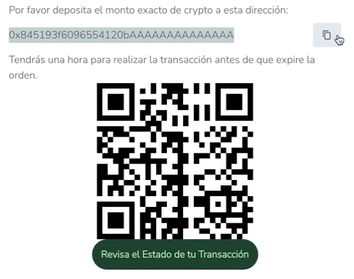 To check your transaction’s status, click the button that will be displayed under the QR code.