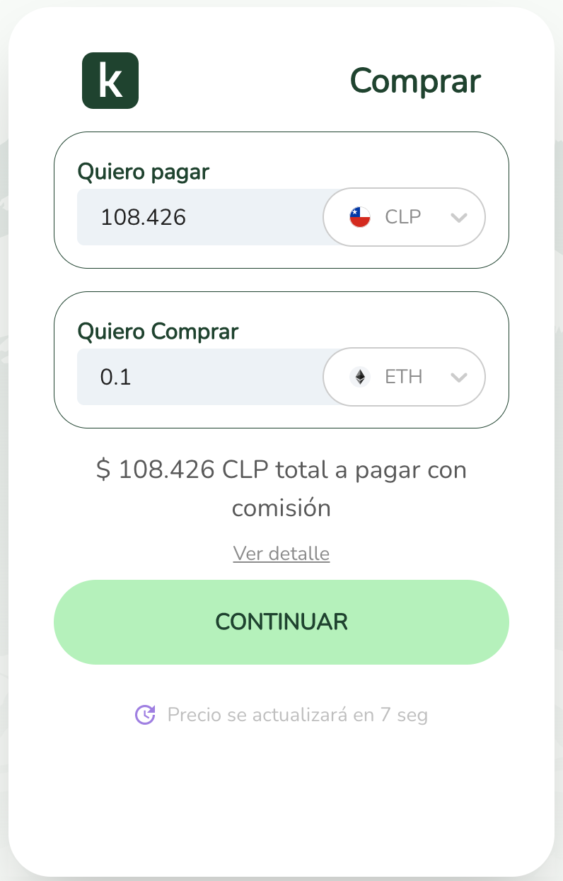 En todo momento del flujo podrás ver exactamente cuánto estás pagando y cuánto recibirás, así como el detalle de las comisiones al hacer click en Ver Detalle.